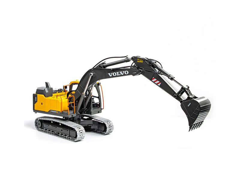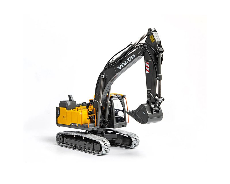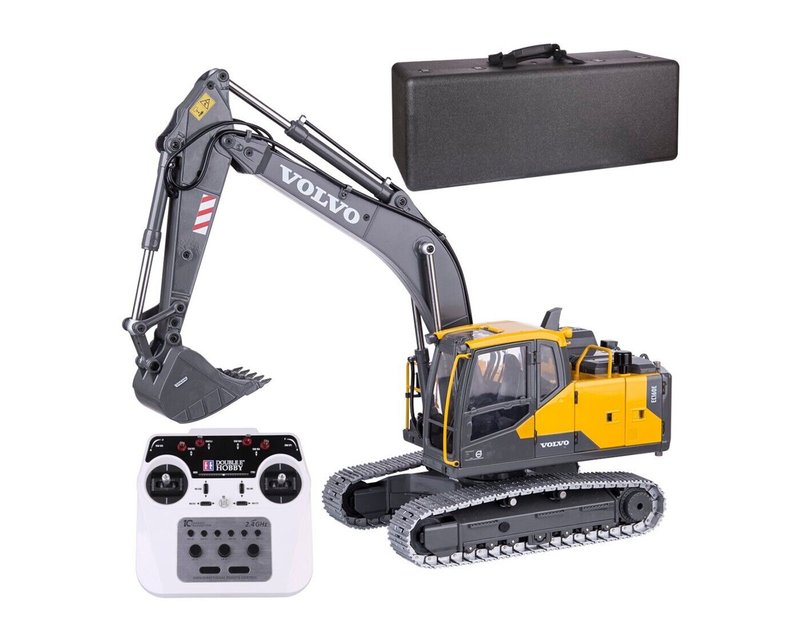 Double E EC160E Escavatore Cingolato Full-Metal - Scala 1:14 L'escavatore full-metal EC160E con licenza Volvo di Double E e un vero gioiello per gli appassionati di macchine da cantiere RC. Con la sua artigianalita di alta qualita, i componenti lavorati a CNC e le funzioni estese, stabilisce nuovi standard. Questo modello in scala 1:14 replica fedelmente il Volvo EC160E, un escavatore cingolato da 16 tonnellate. Con dimensioni proporzionali di 61 x 20 x 22 cm e un'estensione del braccio di 56 cm, il modello sorprende per movimenti e prestazioni altamente realistiche. Tecnologia e costruzione: Grazie alla lega di alta qualita utilizzata per il corpo, le ruote e il braccio, l'escavatore e particolarmente durevole. I robusti cingoli in metallo resistenti alla corrosione (40 mm di larghezza) garantiscono una presa ottimale su varie superfici. Con una forza di sollevamento del braccio principale di 10 kg, una forza del braccio secondario di 7 kg e una forza del cucchiaio di 5 kg, il modello gestisce facilmente compiti impegnativi. La struttura superiore rotante gira a 11 giri al minuto. Dati tecnici: - Tipo: RTR | Scala: 1:14 - Dimensioni: 61 x 20 x 22 cm | Peso: 11.3 kg - Batteria: 7.4V 3000mAh - Radiocomando: 2.4GHz 10 canali