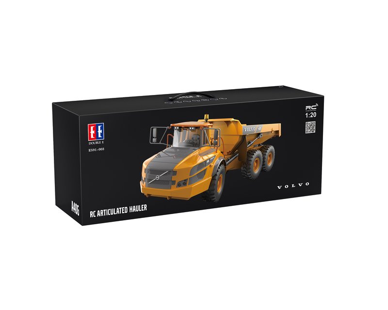 Double E Volvo A40G Hauler Truck (E591-003) - Scala 1:20 Il Volvo A40G Hauler con licenza ufficiale di Double E e l'aggiornamento definitivo per gli hobbisti che vogliono piu potenza, piu funzioni e il massimo divertimento da cantiere. Il cassone ribaltabile e stato riprogettato e puo ora inclinarsi fino a 45 gradi, rendendo il carico e lo scarico ancora piu realistici. Il sistema di trazione a 6 ruote motrici (6WD) consente all'A40G di superare facilmente gli ostacoli anche a pieno carico. Grazie al sistema di sospensioni avanzato, il camion si muove fluidamente su terreni accidentati. Il controllo proporzionale dell'acceleratore e lo sterzo articolato garantiscono una guida precisa, mentre la spia luminosa funzionante sopra la cabina del conducente aggiunge un tocco di realismo in piu. Dati tecnici: - Tipo: RTR | Scala: 1/20 - Dimensioni: 56.5 x 17 x 20.5 cm | Carico massimo: fino a 3 kg - Batteria: 7.4V 1200mAh - Radiocomando: 2.4GHz - Funzioni: sterzo articolato, controllo proporzionale, 6WD, cassone ribaltabile (45), sistema di sospensioni, luce lampeggiante, luci, suono, APP