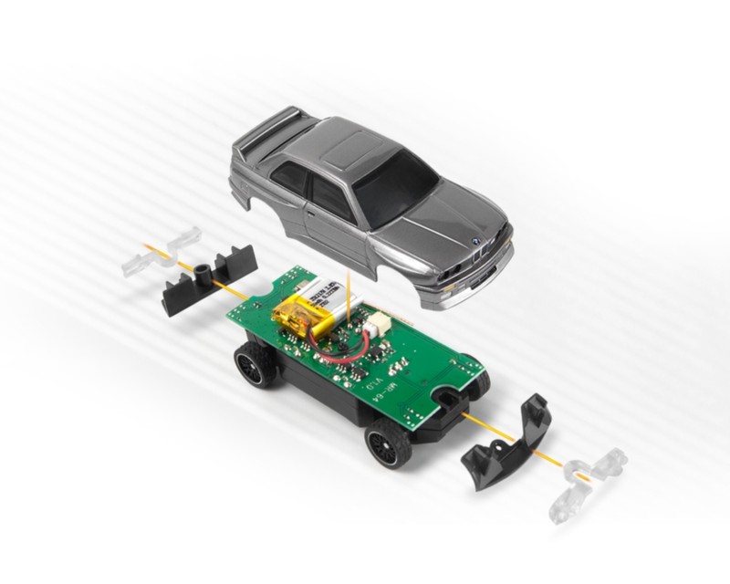 Caratteristiche: - Auto turismo elettrica 2WD 1/64, assemblata in fabbrica e preverniciata - Replica ufficiale della BMW M3 Ravaglia Hard-Body del 1989, rifinita a mano e con licenza ufficiale - Montaggio unico a scatto per repliche con licenza in scala 1:64 - "Real Steer" completamente proporzionale - Luci LED funzionanti (fari, fanali posteriori, retromarcia, indicatori di direzione) - Batteria LiPo 85mAh sostituibile con autonomia di 45 minuti - Radiocomando a 2,4GHz con regolazioni complete - Avvertenze sonore per bassa potenza e tempo di inattivita'