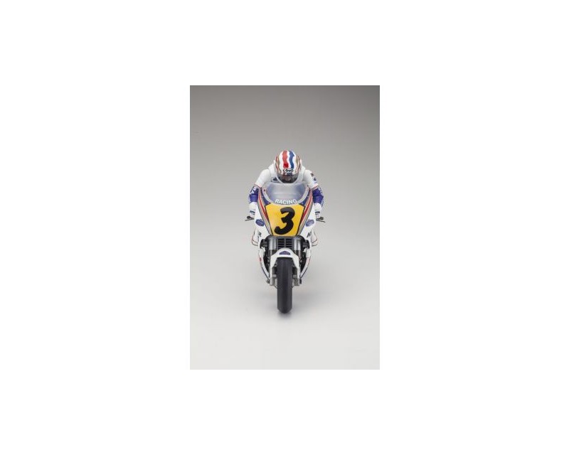 Caratteristiche: - Sistema S.D.S.S. per curve realistiche a piena inclinazione - Pilota con 13 giunti articolati in sincronia con lo sterzo - Pignone di 3a marcia aggiornato da resina a metallo per maggiore durabilita' - Forcella anteriore invertita identica alla moto reale - Griglie radiatore finto per raffreddamento motore/ESC - Protezioni anti-caduta incluse - Cavalletto per esposizione incluso