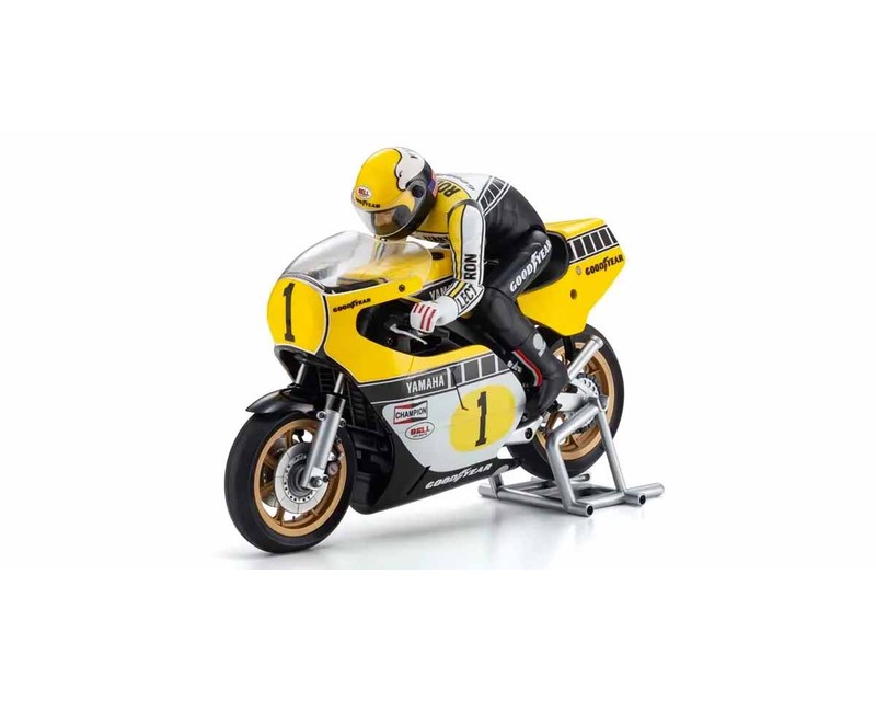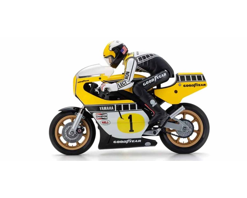 La serie Kyosho Hanging-On Racer in scala 1/8 e' amata per la sua azione dinamica e la tecnologia all'avanguardia. Il sistema S.D.S.S. (Semi-Direct Steering System) garantisce un'equita' di guida autonoma con il pilota che si inclina nelle curve come un vero motociclista. Dal suo debutto nel 1992, la serie ha conquistato un seguito fedele di appassionati, e ora la Yamaha YZR500 1978 si aggiunge alla lineup. Questa moto fu guidata dal pilota americano Kenny Roberts nel suo primo anno da campione del mondo nella classe 500cc del Gran Premio, conquistando il titolo da rookie e dominando con tre campionati consecutivi fino al 1980, guadagnandosi il soprannome 'King Kenny'.