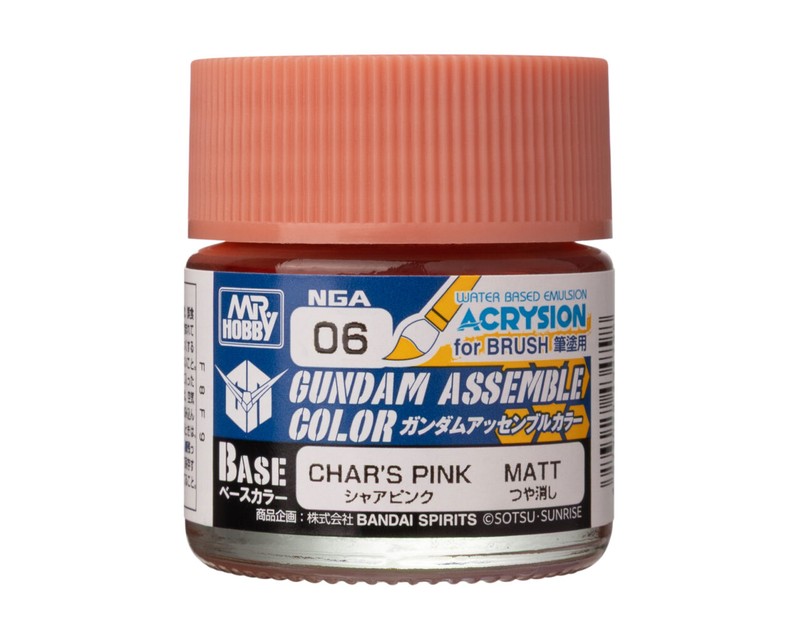Colore acrilico a base acqua della linea Gundam Assemble Color di Mr. Hobby (GSI Creos), sviluppato in collaborazione con Bandai Co., Ltd. e Bandai Spirits Co., Ltd. per la pittura dei kit Gundam Assemble (Gunpla in scala circa 5 cm). Basato sulla formulazione ACRYSION Base Color, garantisce ottima fluidita' e potere coprente nella pittura a pennello su parti di piccole dimensioni. Prodotto sicuro a bassissima emissione di odori, ideale anche per principianti e per dipingere in compagnia. Caratteristiche tecniche: - Tipo: acrilico a base acqua (ACRYSION) - Finitura: opaco - Volume: 10 ml - Colore: Rosa Char