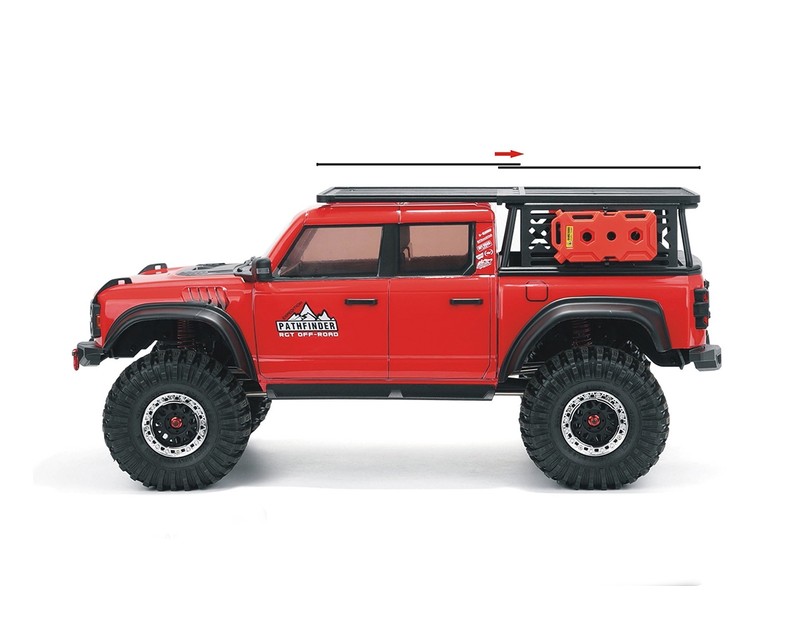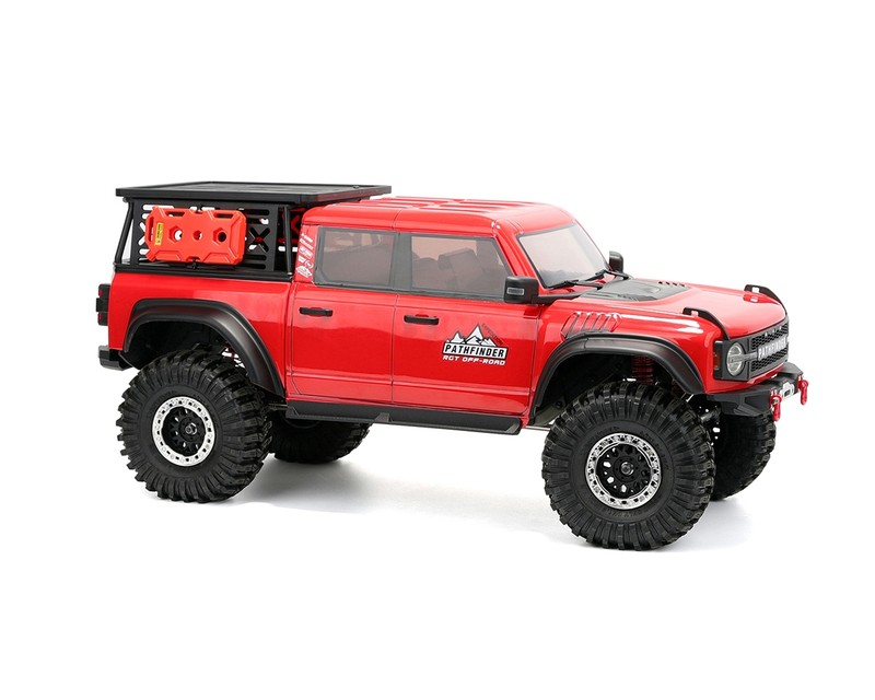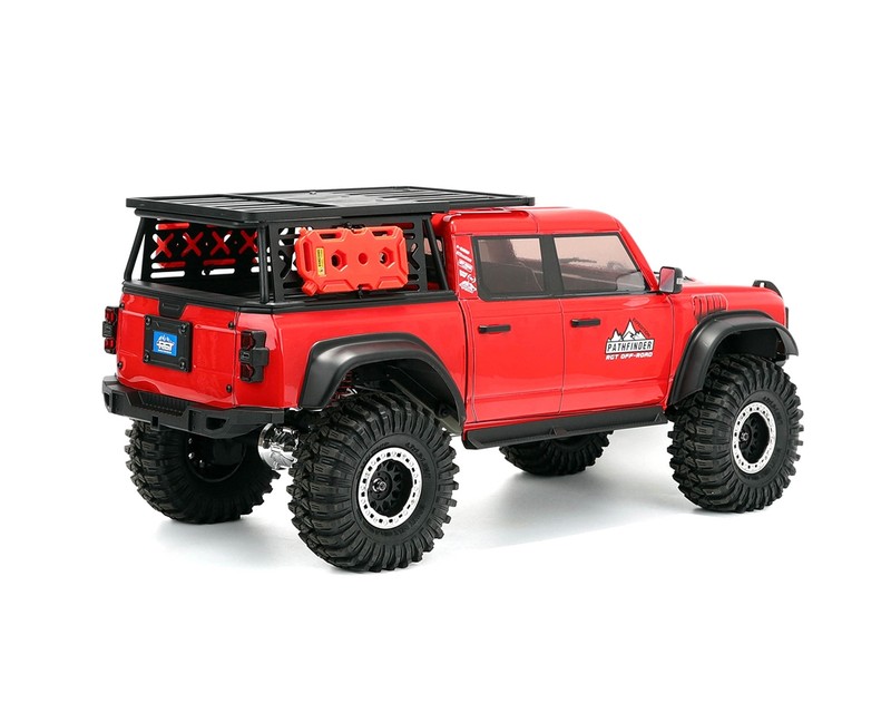 Pathfinder 1/10 radiocomandato - carrozzeria rosso. Il Pathfinder e' un nuovissimo crawler radiocomandato in scala 1/10 basato sulla piattaforma chassis LC76 (modello RESCUER), progettato come rock crawler a passo lungo. Il passo di 355 mm conferisce al veicolo caratteristiche di guida piu fluide e stabili. Il Pathfinder dispone di assali a portale integrati anteriori e posteriori, bloccaggio differenziale anteriore e posteriore e cambio a due velocita con retromarcia. La carrozzeria ha un aspetto da pickup truck, che abbassa il baricentro e fornisce un angolo di approccio maggiore. Viene fornita con carrozzeria in policarbonato spessa 1,5 mm, incluso l'interno. E dotata di un portapacchi in nylon multifunzionale combinabile con vari accessori scale esterni. Il Pathfinder e' equipaggiato con un controller di velocita ad alte prestazioni da 80A (spesso usato su vetture 1/8), uscita BEC da 7,4V e motore RC550. Viene fornito con un sistema LED multimodale e radiocomando 2,4GHz a 6 canali. Dispone di 4 servi con ingranaggi in metallo, incluso un servo sterzante da 30 kg. Caratteristiche principali: - Motore anteriore e cambio a 2 velocita con retromarcia - Assali a portale con riduttori e angolo di sterzata di 42 - Bloccaggio differenziale anteriore e posteriore a controllo indipendente - Cuscinetti a sfera su tutta la trasmissione, ingranaggi in metallo con frizione - Ammortizzatori regolabili in metallo riempiti d'olio con doppia molla - Carrozzeria PC verniciata 1,5 mm con finestrini trasparenti e modulo LED con connettore magnetico - Ruote realistiche da 1,9 pollici - Motore brushed RC550 20T, ESC HobbyWing 80A, servo sterzante impermeabile da 30 kg in metallo - Set radio 2,4GHz a 6 canali progettato appositamente per crawler Specifiche tecniche: - Scala: 1/10 - Passo: 355 mm - Larghezza: 248 mm - Altezza: 250 mm - Lunghezza: 566 mm - Peso: 3,68 kg - Frequenza: 2,4 GHz - Batteria trasmettitore: 4x AA (non inclusa) - Batteria veicolo: LiPo 2S o 3S (non inclusa) Il set comprende: - Modello assemblato completo pronto all'uso - Radiocomando 2,4GHz a 6 canali - Accessori scale