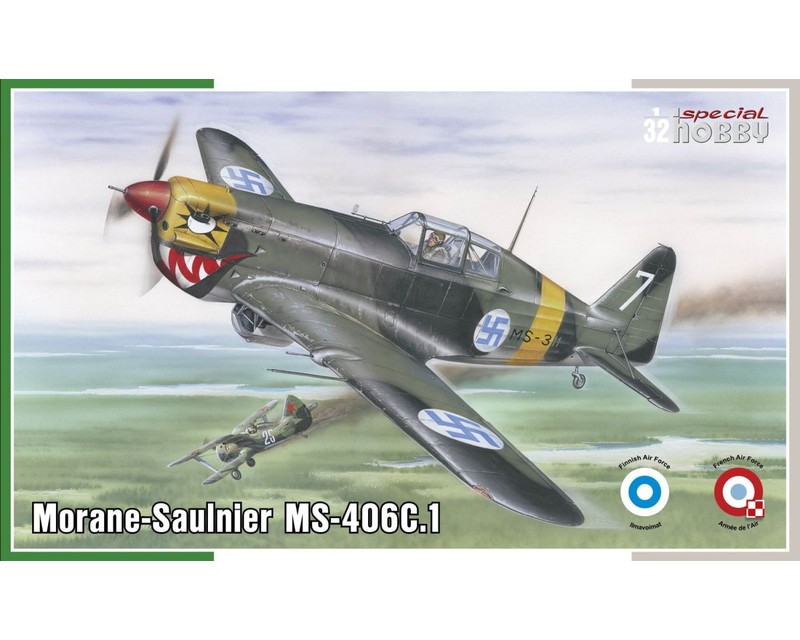 Kit in plastica in scala 1:32 del caccia Morane-Saulnier MS-406C.1 nella versione HI-TECH. Nel 1934 l'Armee de l'Air francese indisse una gara per un caccia monoplano veloce 450 km/h con armamento di uno o due cannoni da 20 mm. Vinse il Morane Saulnier MS-405C.1; vennero prodotti solo 16 esemplari di quella versione, poi sostituita dall'MS-406C.1 con motore H-S 12Y.31, cannone che sparava attraverso il mozzo dell'elica e due mitragliatrici alari. Furono prodotti 1.064 esemplari comprese le versioni export. All'inizio della guerra l'MS-406C.1 era il caccia piu' numeroso dell'aviazione francese. Fu impiegato in Francia, nel Nord Africa e in Indocina e acquistato da Turchia, Finlandia e Svizzera. La Germania, l'Italia e la Croazia utilizzarono gli esemplari catturati. Il kit contiene quattro sprues di plastica grigia, uno con parti trasparenti, parti in resina e due fotoincise. Le decals propongono tre livree: due francesi (una con la scacchiera polacca) e un Morane finlandese decorato con la tipica bocca dentata. Caratteristiche: - Scala: 1:32 - Edizione: HI-TECH Special Hobby - Parti in resina incluse - Parti fotoincise (2 fogli, uno pre-colorato) - Decals per 3 livree