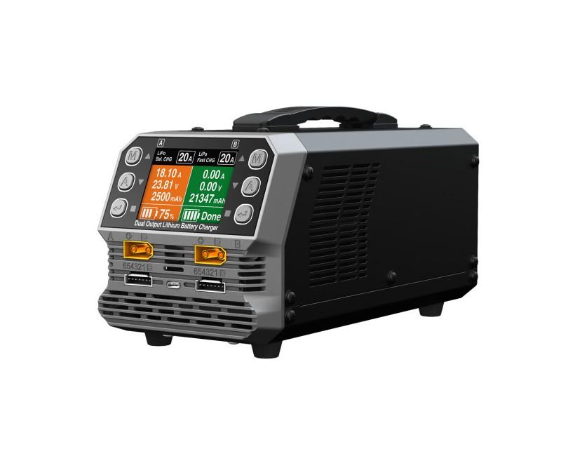 Caratteristiche principali: - Potenza totale 1080W (2x540W) - Modalita storage per longevita batterie - Processore ARM Cortex-M3 ad alte prestazioni - Tensione finale regolabile: LiPo 4.15-4.25V/cella, LiHV 4.25-4.50V/cella - Corrente di bilanciamento elevata: 200-1800mA - PFC attivo e 90% efficienza energetica - Display a colori 2.8" (320x240) - Protezioni multiple: polarita inversa, cortocircuito, sovratemperatura - Interfaccia multilingue