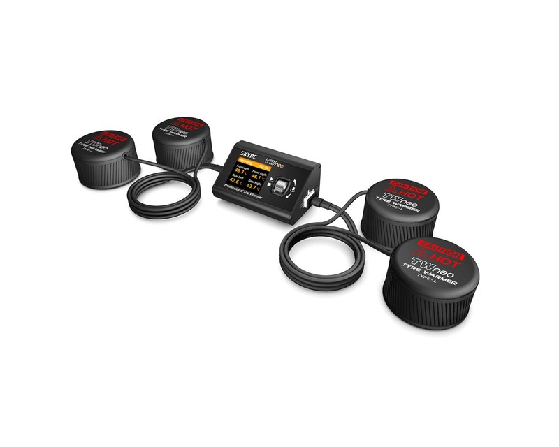 Il SkyRC TWneo e' uno scalda-gomme di ultima generazione per veicoli RC che porta i pneumatici alla temperatura ottimale prima della gara. Grazie al controllo indipendente della temperatura per gli pneumatici anteriori e posteriori e ai sensori ad alta precisione, il TWneo garantisce trazione perfetta fin dal primo giro.