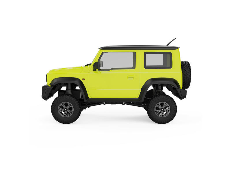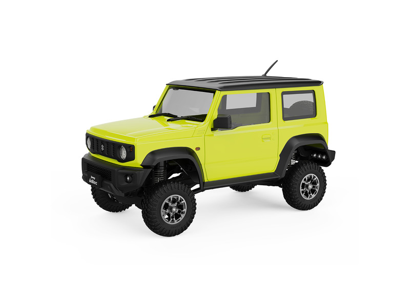 With a compact length of just 198mm, the Jimny fits easily into a backpack yet impresses with real 4WD drivetrain, a high-torque KF130WH brushed motor, and precise control. The 0.5kg digital servo and 30° steering angle allow for highly responsive maneuvers even in tight spaces.